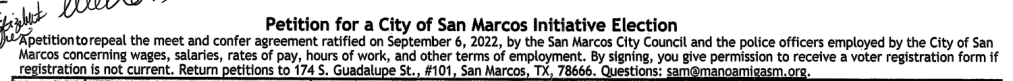 Item 21: Mano Amiga circulated a petition to repeal the SMPD contract. Now, I obviously live here in San Marcos. If Mano Amiga were to approach me, I would sign their petition, because I generally support their mission.