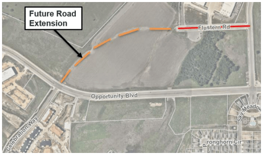 However, Flustern Road will eventually cross Opportunity Blvd, and connect with Celebration Way: