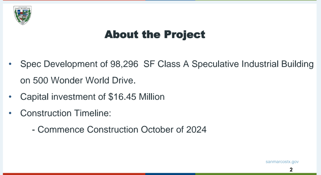 The presentation says this will address all of San Marcos’s waste water needs through 2063.