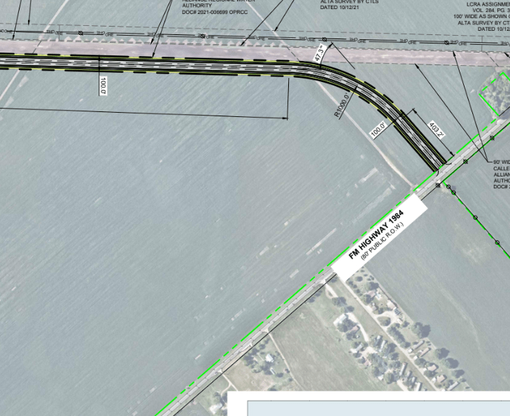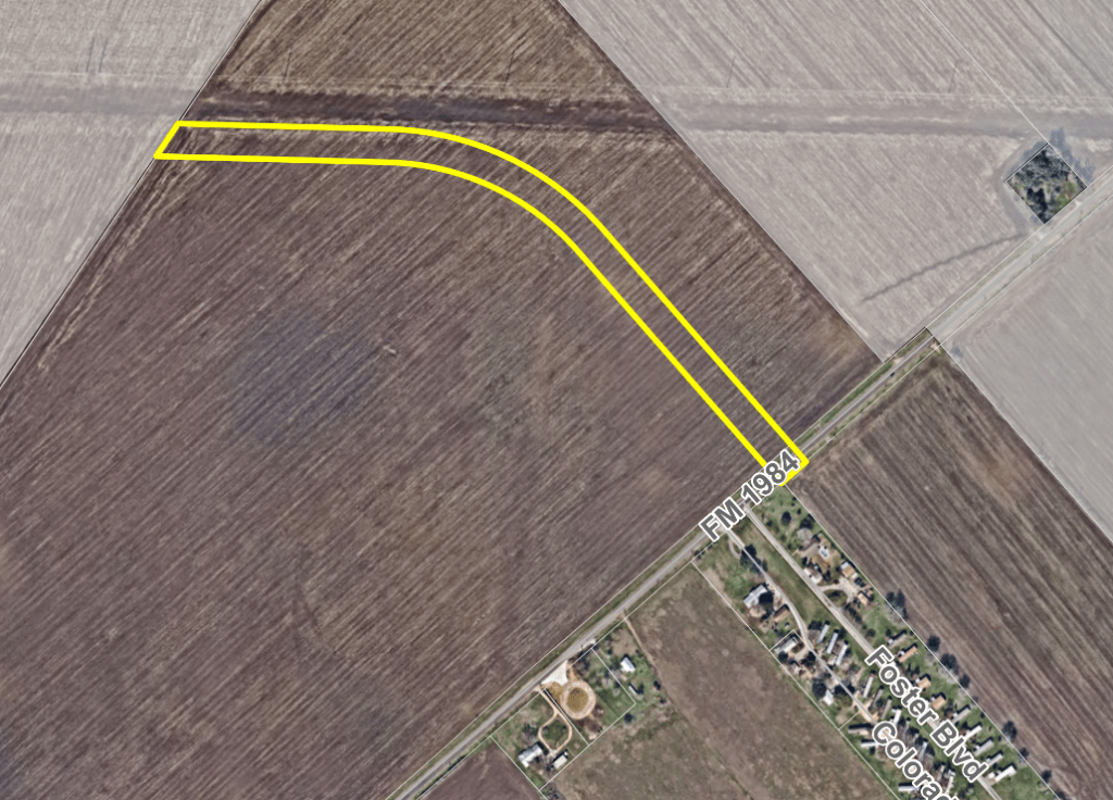 It’s that dotted blue line between Loop 110 and Hwy 1984. Not the whole thing, just the right hand elbow of it: