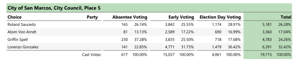 Place 5: Lorenzo Gonzalez and Roland Saucedo are headed to a run-off. Here’s how it shook out: