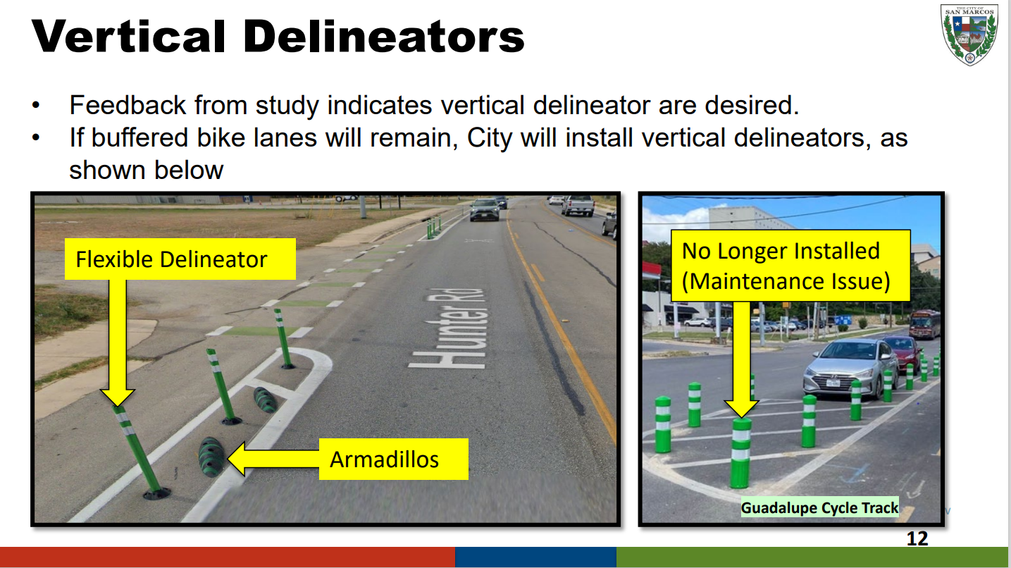 The bikers have concerns, though. What are “vertical delineators” that the cyclists want?