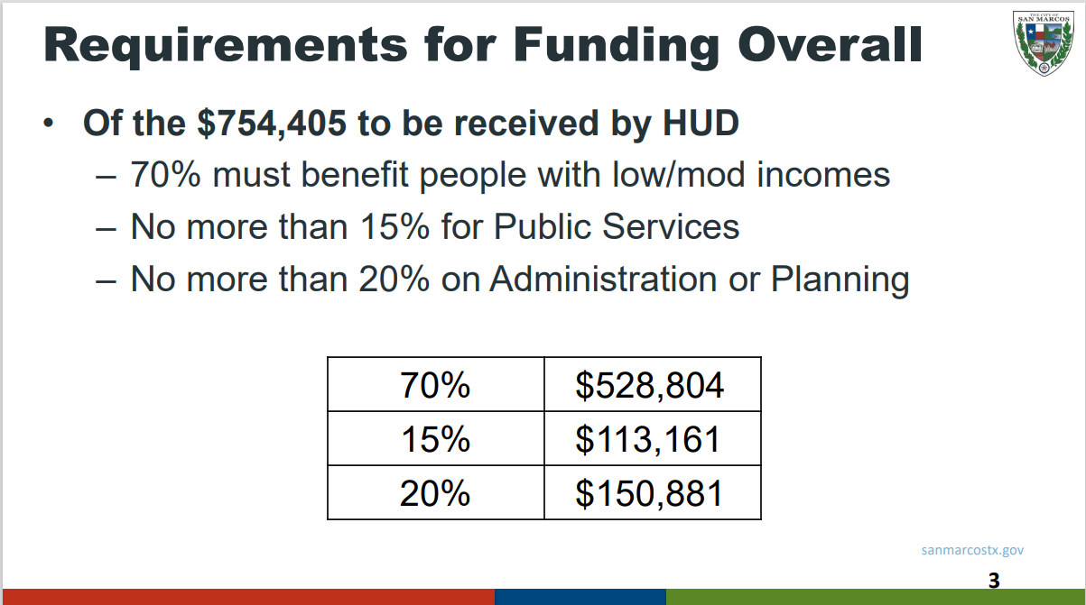 CDBG stands for Community Development Block Grant. This is money from HUD for local projects. This year we have $750K to distribute.