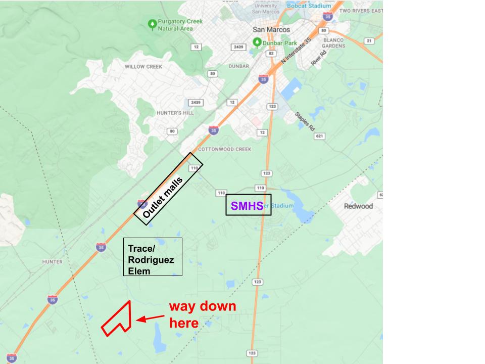 Yes, it’s gigantic. The red one from earlier is 200 acres, and this one is 785 acres. They’re saying it would also include housing. Unlike the one in red, the developer wants this one to be on San Marcos water.