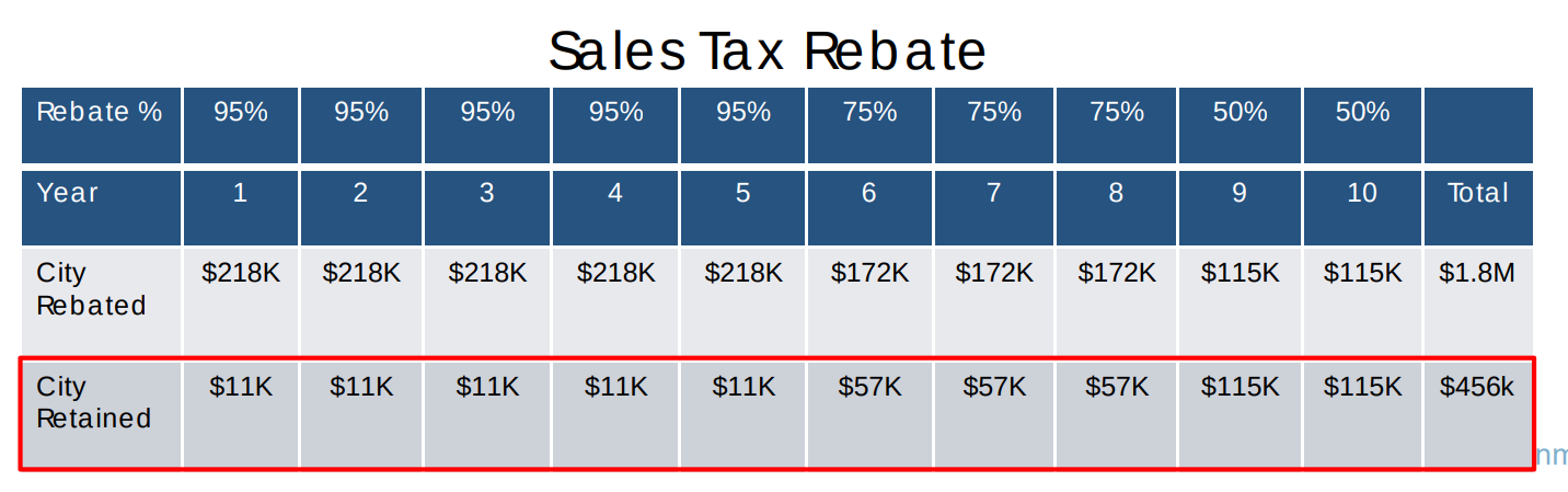 Perk #2: We’re protected if they sell the whole thing to Texas State. Since Texas State pays no taxes, the whole deal goes belly-up, and they have to reimburse us for the rebates:
