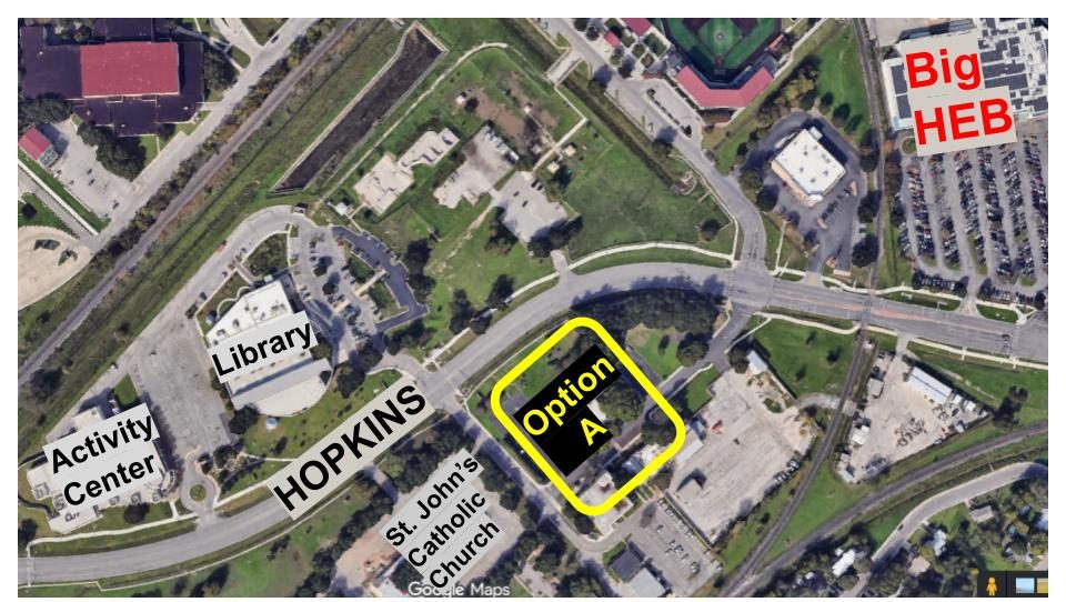 In other words, keep it in the current location. They’d tear down the existing site and rebuild. Council would have to relocate during construction.