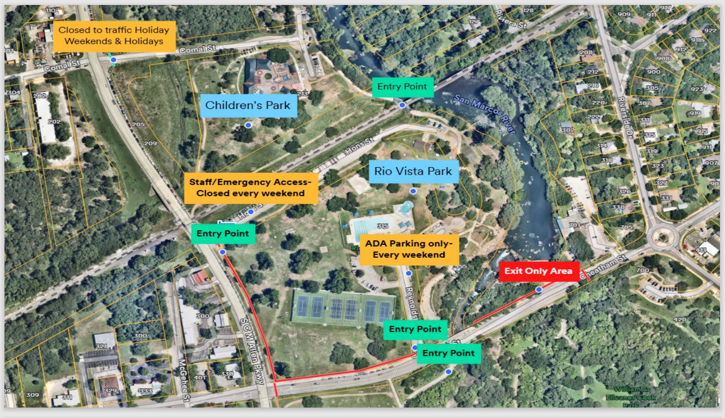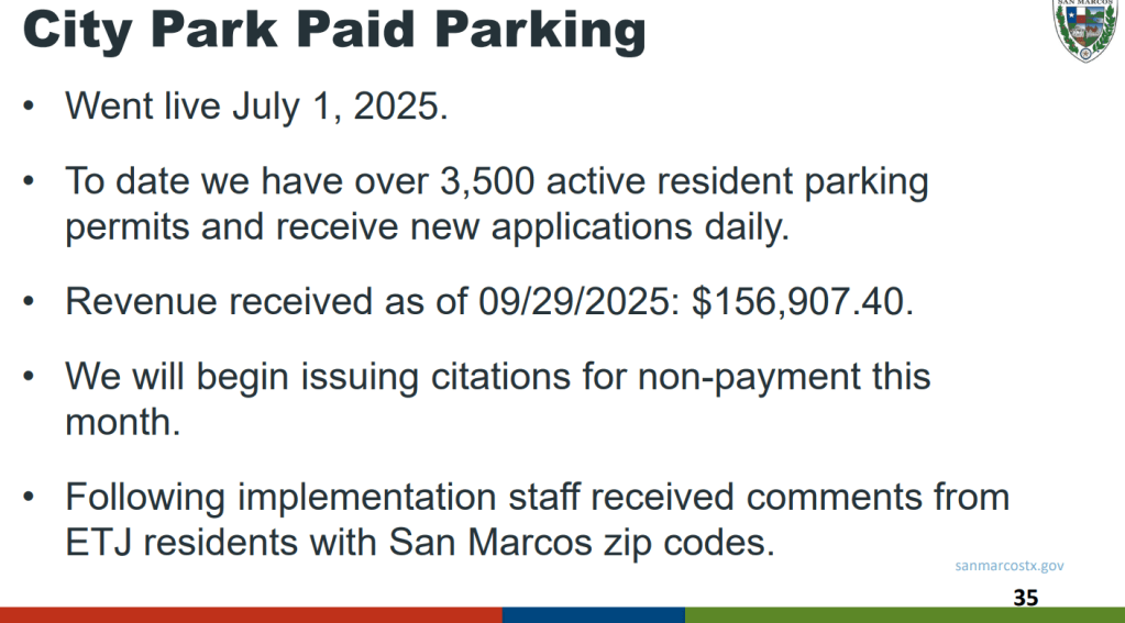 They have not yet been ticketing anyone, but they’re about to start. (Apparently there have been problems with Texas State students. Students can park there, as residents who want to use the parks, but not to go attend class at Texas State. I have no idea how they can tell who is doing what.)