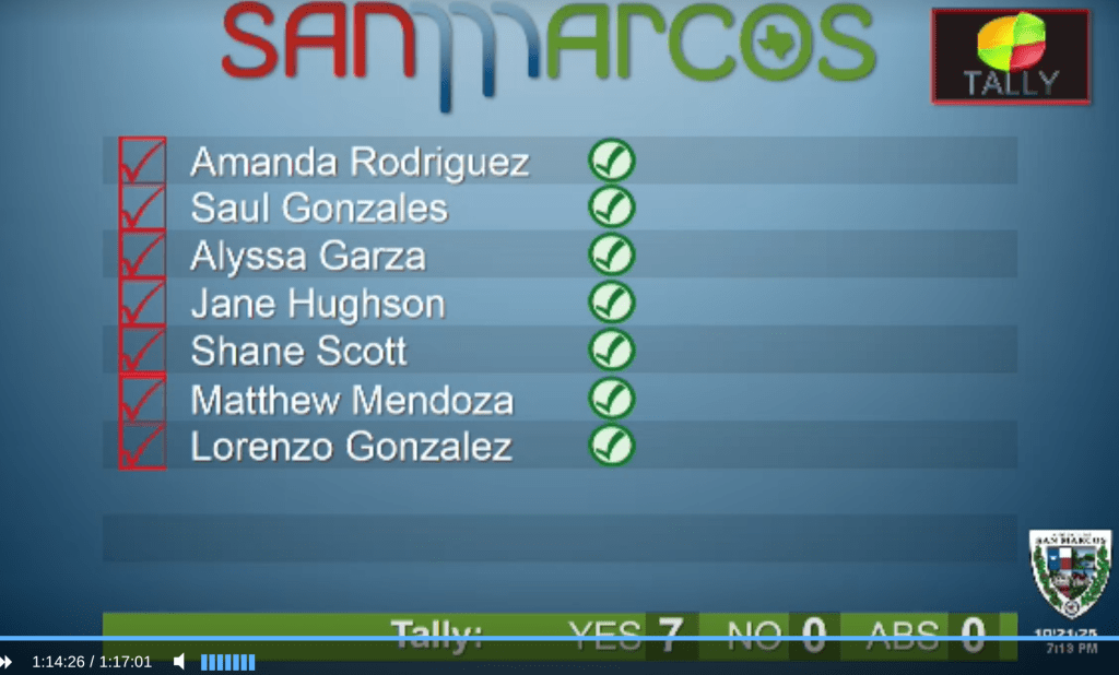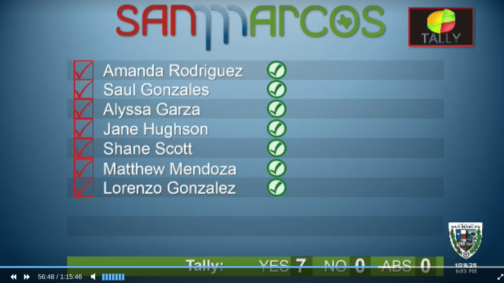 There’s some minor quibbling about what “close” should mean. Anyone in who lives in SMCISD? Anyone with a San Marcos mailing address? some third option? I think they settled on SMCISD.