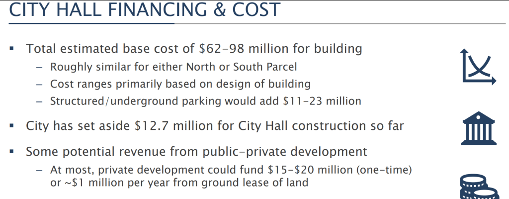 The state won’t let cities borrow money to build city halls without voter approval. This makes everything complicated.
