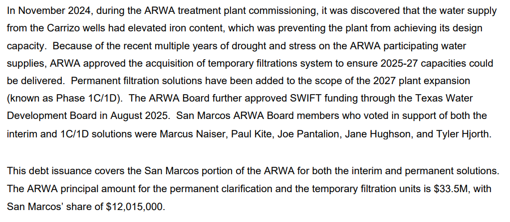 This started back in 2007, and it was a longterm plan to get water from the Carrizo-Wilcox aquifer. It came online this summer! So this is great. Almost 20 years of longterm planning!