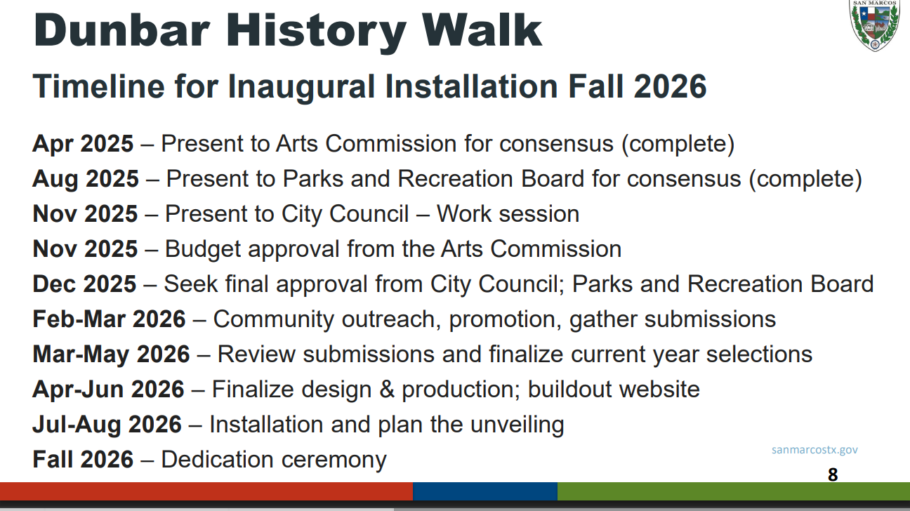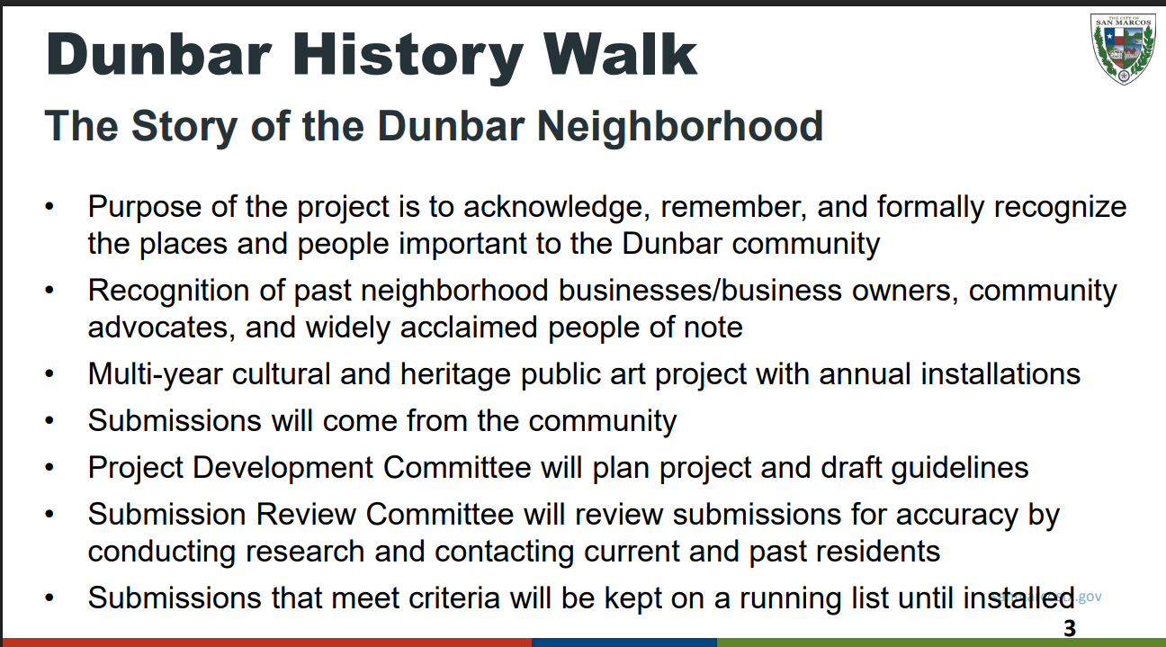 So the Dunbar Sistas are a group of women who played softball together as teens, decades ago, and are now some of the community anchors in San Marcos. They are the ones who originally came up with this idea. Two of them – Mittie Miller and Deborah Giles Webster – both spoke at the meeting about their process.
