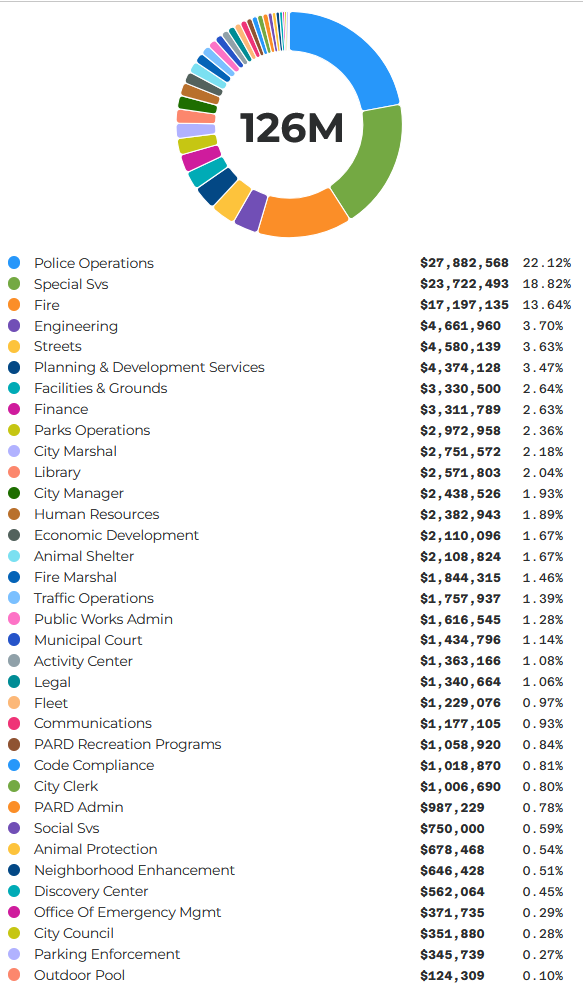 SMPD is a rather large chunk of the general fund. The General Fund this year is $126 million: