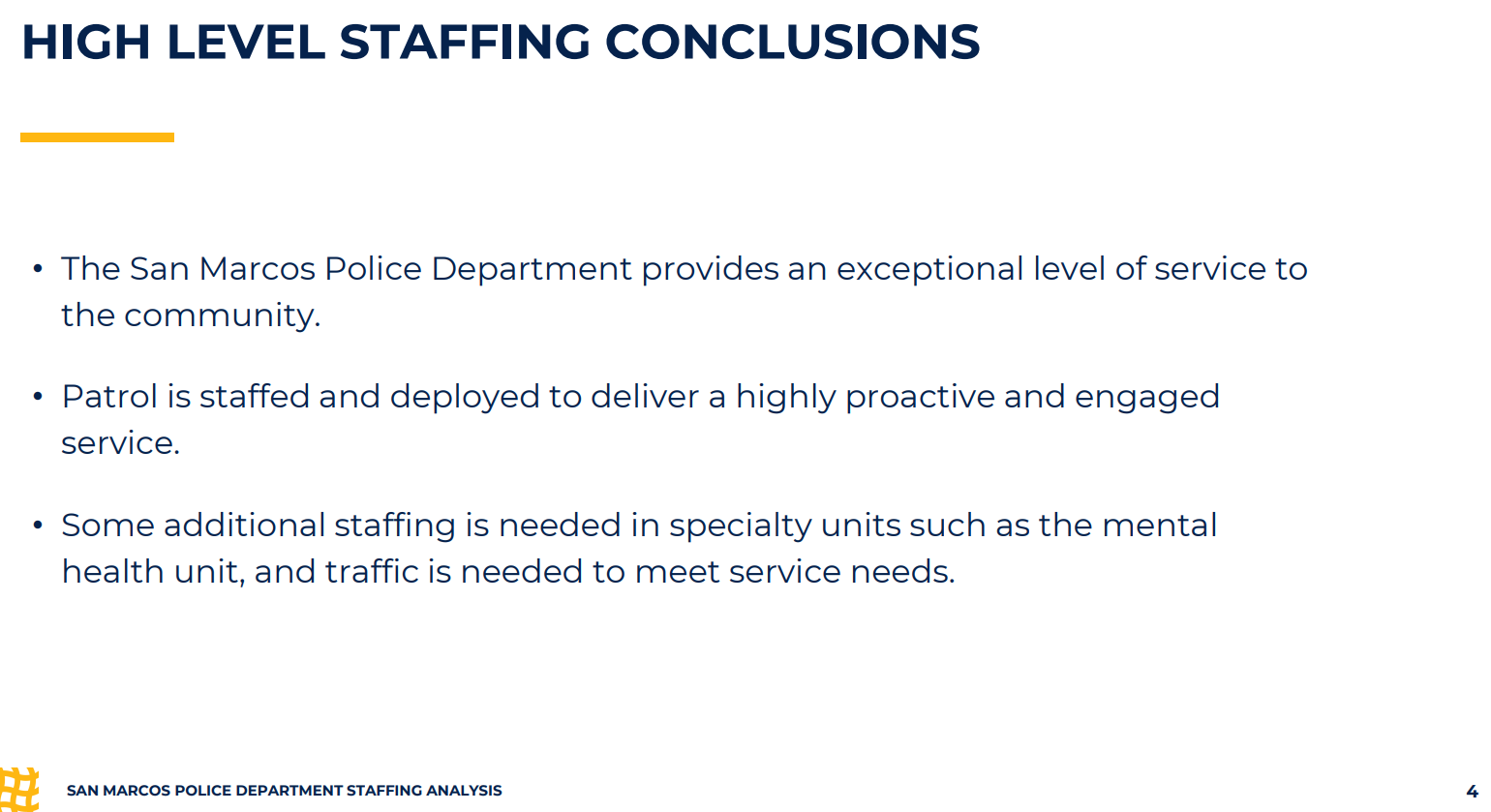- This whole report is inherently pro-cop, because it is pro-status quo. This is not a conversation about how we can re-imagine safety in San Marcos. However, a majority of San Marcos does support SMPD.