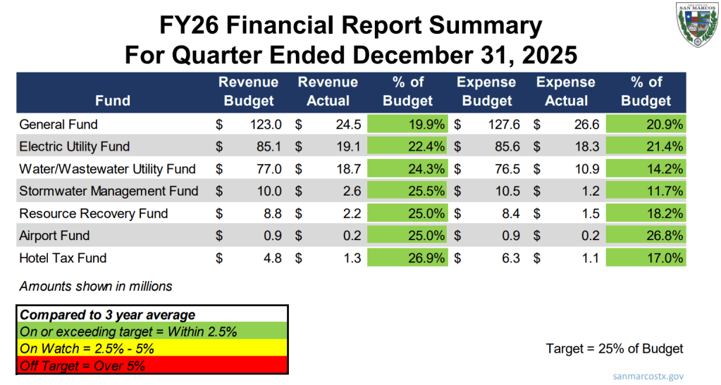 Every three months, the city reviews its finances. This one covers October, November, and December 2025.