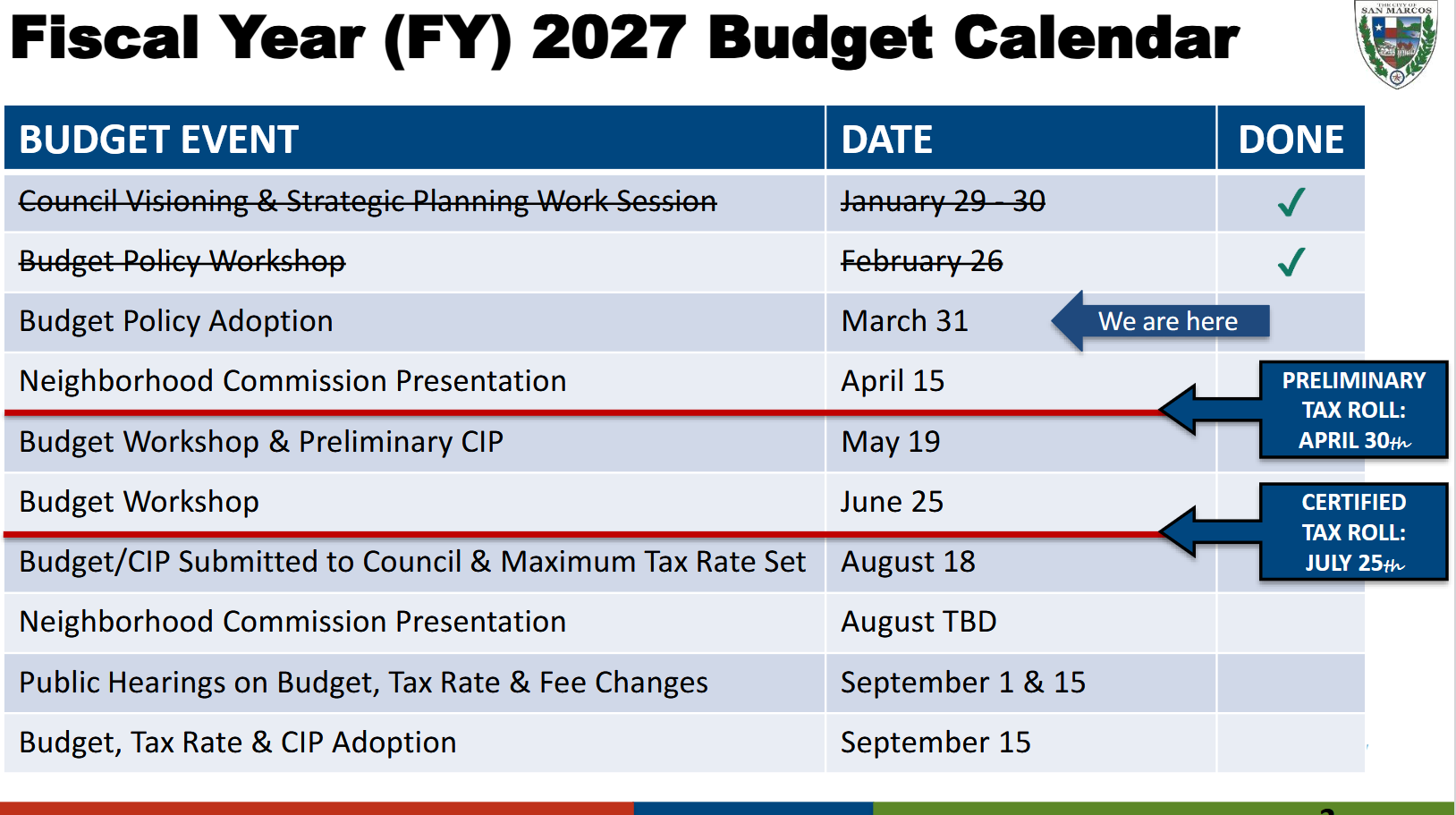 March is Budget Policy time. This is where Council sets a bunch of expectations for staff to work with.