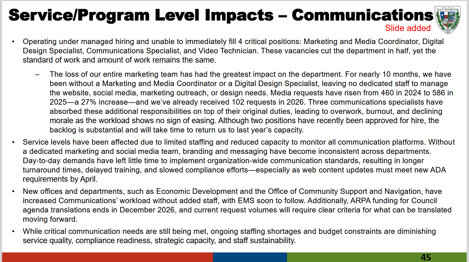 Listen: if you ever hear someone complaining about the city, chime in and say, “Yes! Can you believe how short-staffed they are? Why won’t Council pass a structurally balanced budget?”