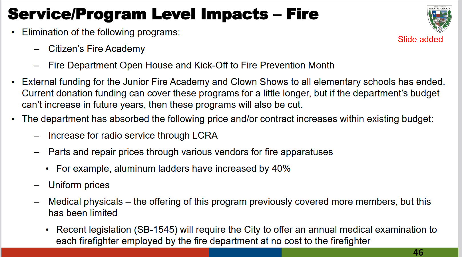 Also! Also! The $4 million shortfall does not include EMS. The EMS conversation will happen next week.