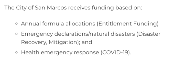 Item 1: We get CDBG funding from the federal government, specifically from HUD. We qualify on a few different points: