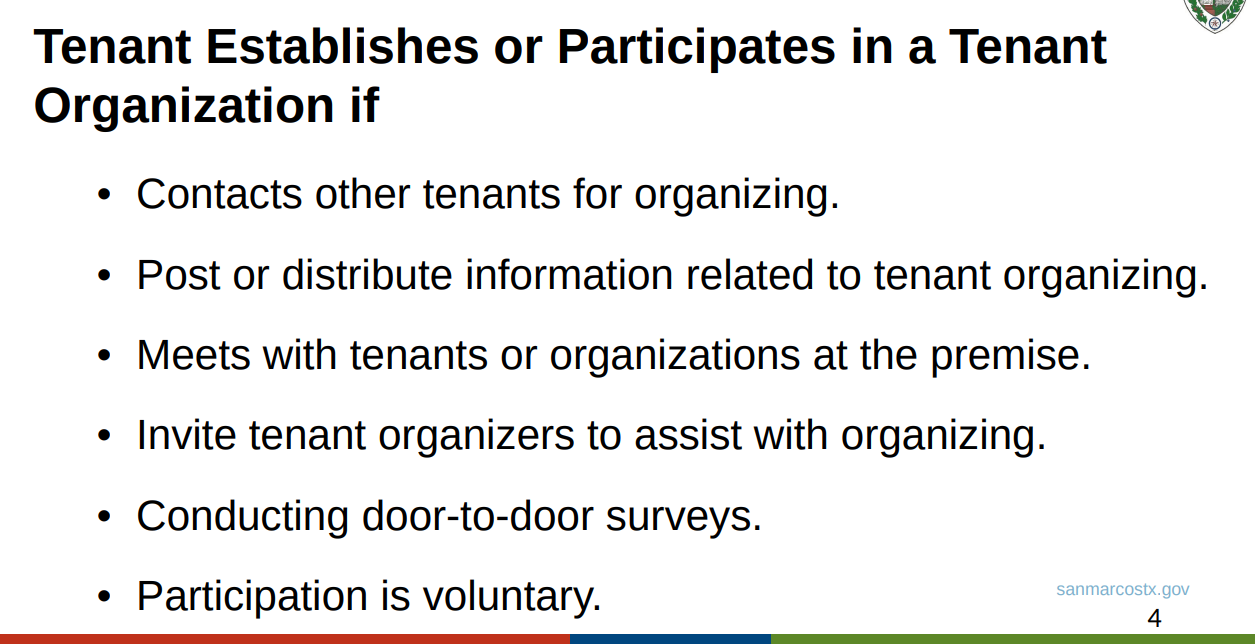 The basic idea is that tenants should be able to meet up and talk about their landlord, or their living conditions, without fear of getting evicted.
