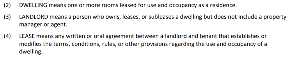 “Dwelling” and “landlord” don’t seem broad enough to include “Installment Contracts”.