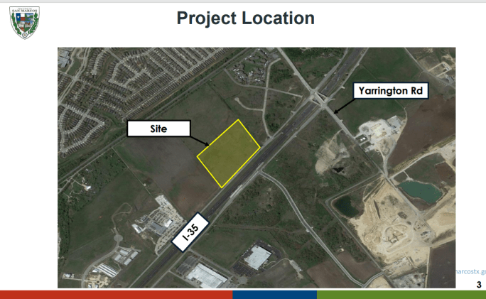 This is a good location. It’s not in any floodplain, it’s not over the Edwards Aquifer recharge zone, nor any other sort of environmentally sensitive zone. It’s good for traffic, too, because there are off-ramps and on-ramps right there. Southbound I-35 traffic can get in and out, without having to wait at any traffic lights.