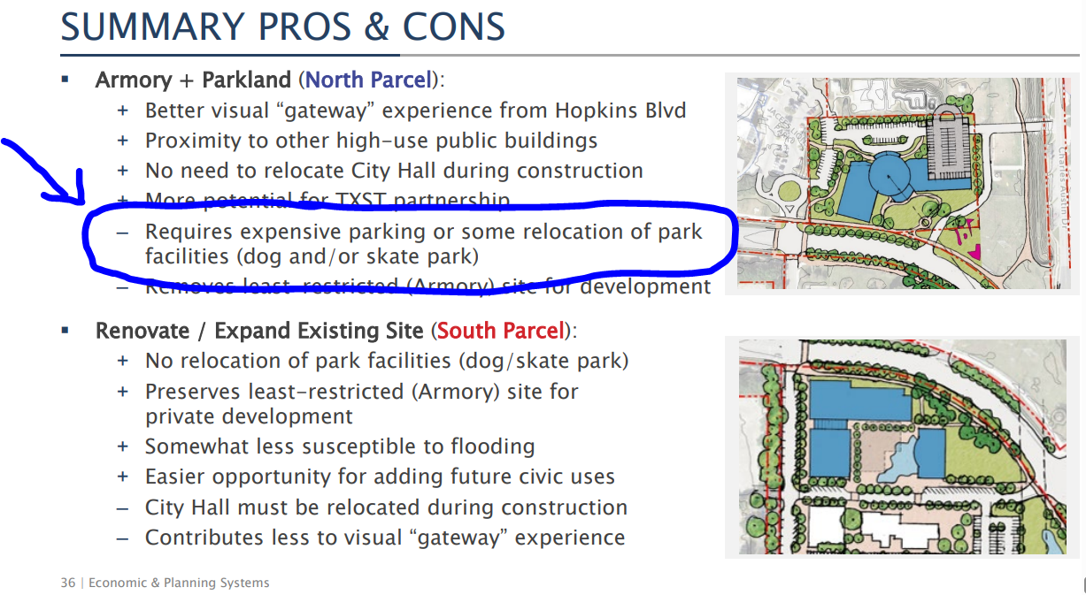 City Council decided that they could keep the skate park where it is. They would just squeeze City Hall in immediately right up against the skate park, looming like a big shadowy Gotham City Headquarters over your rebel anarchist skater good time. (But the dog park would be relocated.)