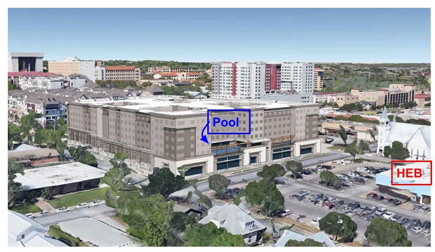 Matthew Mendoza: Will you put the pool somewhere else, so that people at HEB don’t have to see it?