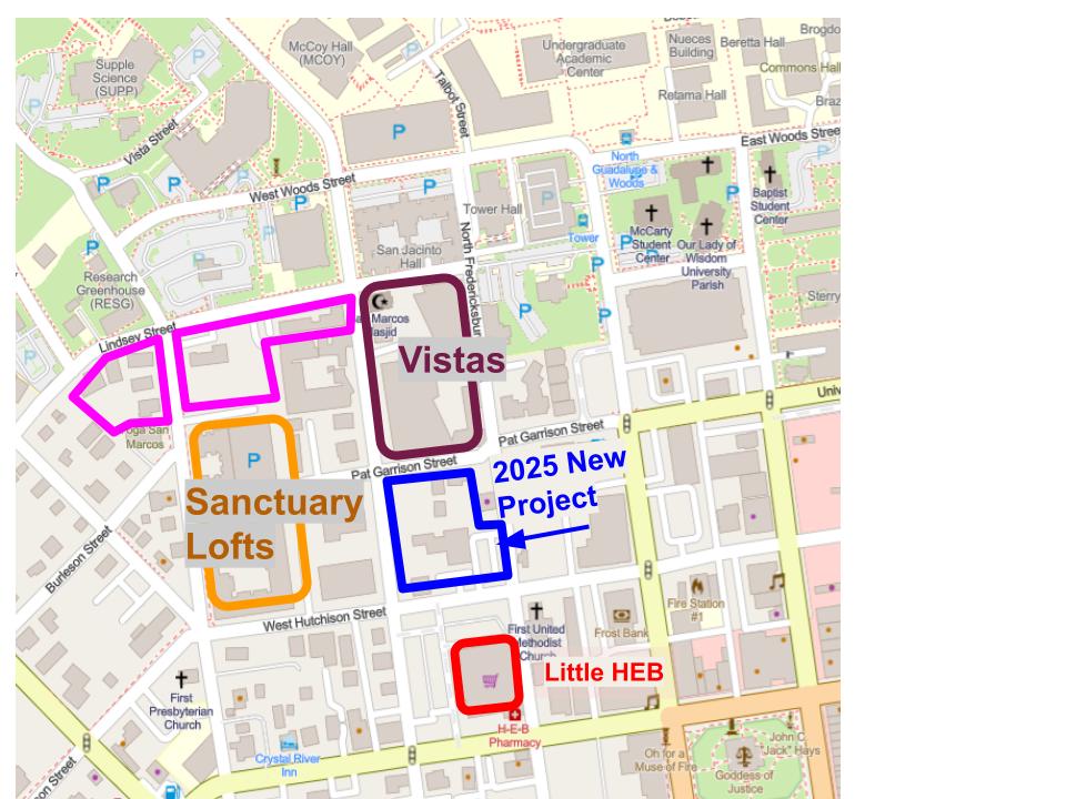 Finally it turns out that the developers misunderstood: they thought they weren’t allowed to sell the complex, period. But the city doesn’t care if they sell the complex – we just don’t want them to sell it to Texas State, or anyone else that is tax-exempt. The city just doesn’t want to lose the property tax income!